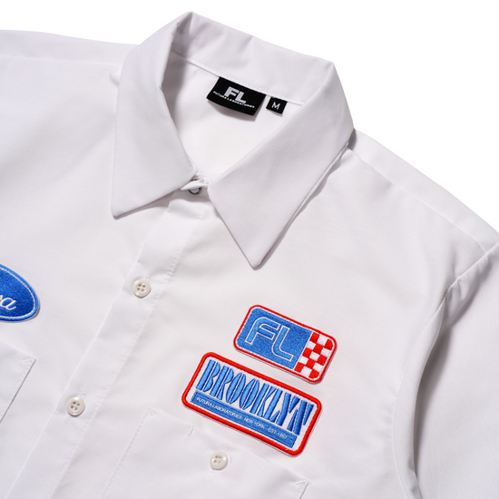 Classic button-down that keeps you looking sharp. Features three embroidered patches with FUTURA, FL, and BROOKLYN love.